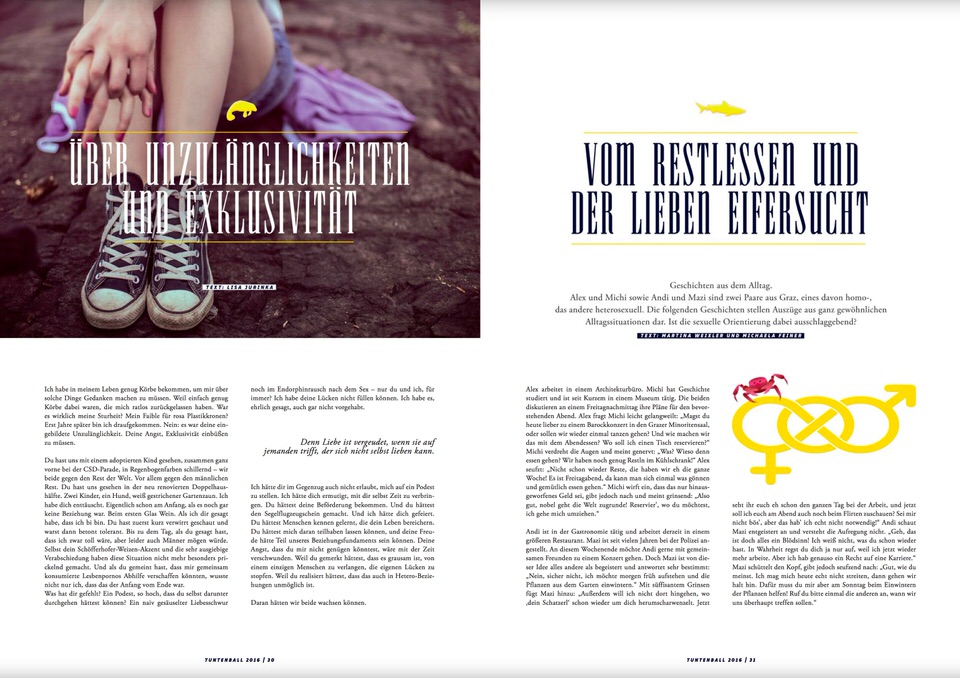 Auf humorvolle und doch tiefgründige Art soll hier den Unterschieden von hetero- bzw. homosexuellen Paaren auf den Grund gegangen werden. Oder überwiegen womöglich doch die Gemeinsamkeiten? mit Martina Weixler: Vom Restlessen und der lieben Eifersucht: In: Panthera (2016), S. 31. Hier geht’s zur Online-Ausgabe.Sexualität